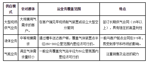 表 工業(ye)氣體供貨方式的(de)特性